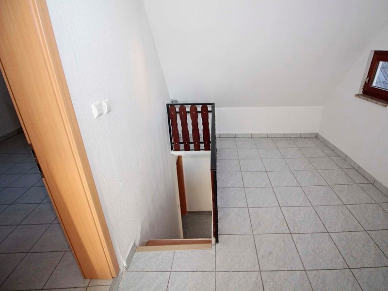 Der Dachspeicher ist über eine Auszugtreppe erreichbar und bietet Abstellfläche.