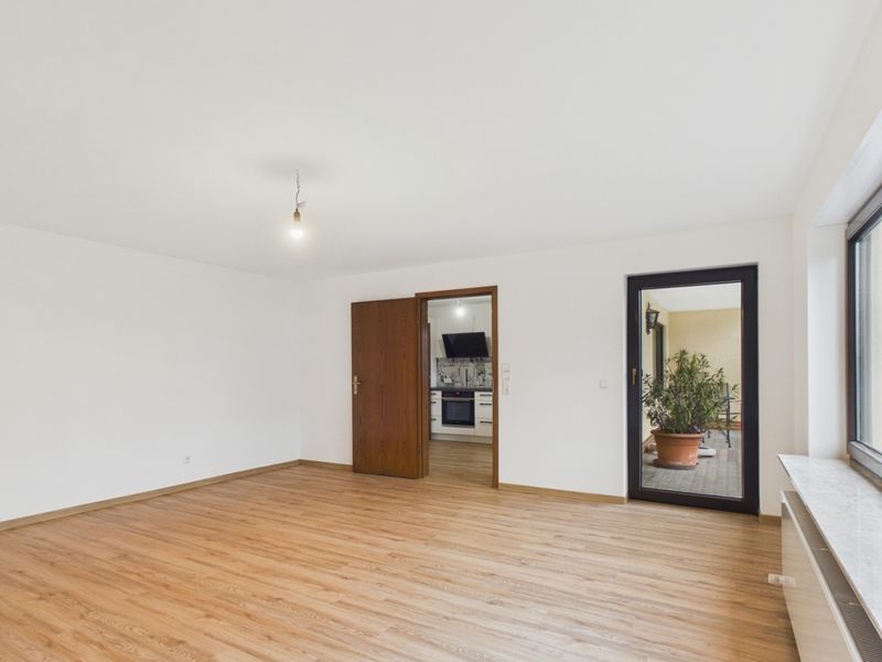Die hier zu Vermietung stehende Wohnung, die im Erdgeschoss eines 2-Familienhauses liegt, wurde 2025/26 modernisiert. Das Haus wurde in Hanglage gebaut, weswegen die Wohnung mit ihrem hinteren Bereich (Abstellraum) im Erdreich liegt.