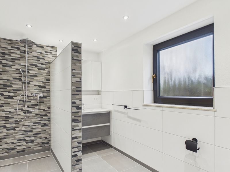 – Komplett neues Tageslicht-Badezimmer mit bodenebener Dusche, Schränken & Handtuchheizkörper