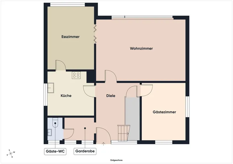 Im Erdgeschoss finden Sie neben dem großzügigen Wohnbereich, dem Esszimmer, der Küche, dem Gästezimmer und der großzügigen Diele, ein separates WC, das zusätzlichen Komfort bietet. Im Außenbereich erwartet Sie eine südlich gelegene Terrasse, die der perfekte Ort für entspannte Nachmittage im Freien ist. Genießen Sie die Abendsonne auf Ihrem zusätzlichen Balkon.