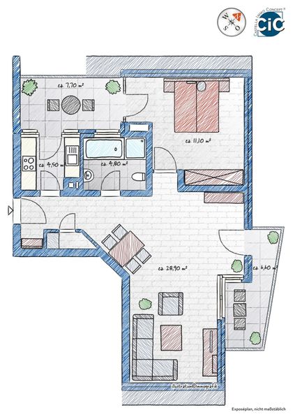 Sämtliche angegebenen Wohnflächen in diesem Exposé wurden gemäß der Wohnflächenverordnung (WoFlV) berechnet.