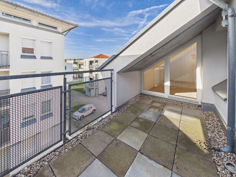 Zur Wohnung gehören zwei Dachterrassen. Die an das Wohnzimmer angeschlossene Terrasse bietet einen tollen Fernblick, die andere hingegen etwas mehr Privatsphäre.