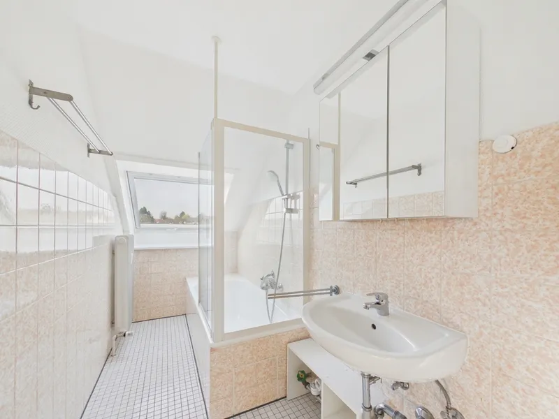 Das Badezimmer ist mit einer Badewanne ausgestattet und wird durch ein separates WC sinnvoll ergänzt. Die Küche verfügt über eine Einbauküche und bietet ausreichend Platz zum Kochen und Arbeiten.