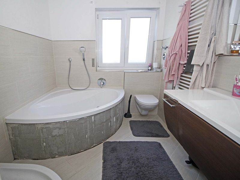 Die Wohnung wurde von den Eigentümern bereits für eine Modernisierung vorbereitet. Geplant war eine vollständige Renovierung des Badezimmers – erste Arbeiten wie die Demontage der Decke sowie der Fliesen im Bereich der Badewanne sind bereits erfolgt. Das Bad muss daher vor dem Einzug fertiggestellt werden, bietet dafür aber die Möglichkeit, es nach eigenen Vorstellungen neu zu gestalten.