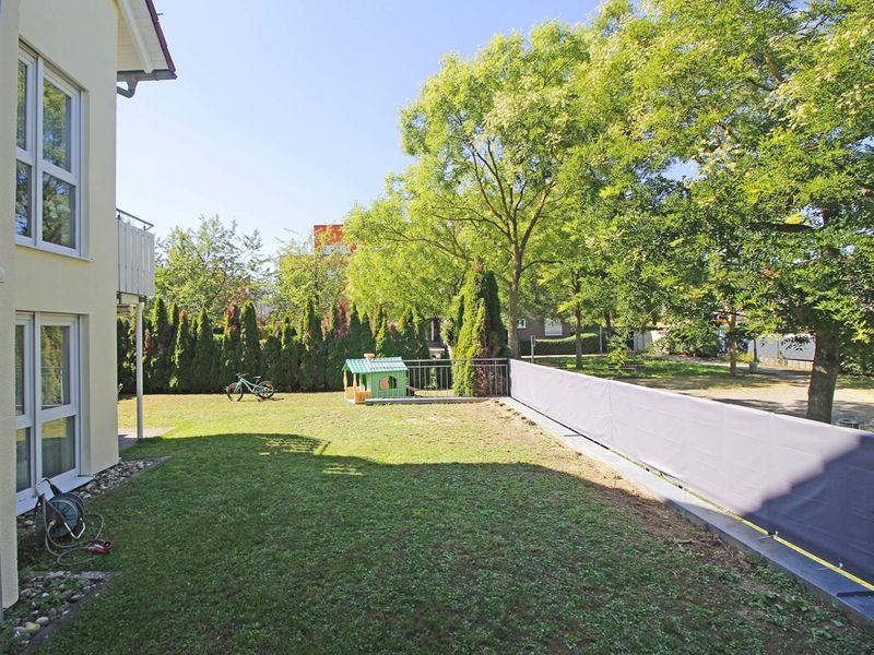 Die hier zum Verkauf stehende praktisch geschnittene Erdgeschoss-Wohnung mit Garten befindet sich in einem gepflegten Mehrfamilienhaus, das im Jahr 2006 voll unterkellert und ausgestattet mit Tiefgarage gebaut wurde. Um das Haus herum ist es grün – hier wurde eine kleine Parkanlage mit Sitzmöglichkeiten, viel Rasenfläche und Spielplatz angelegt.