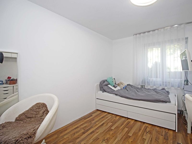 Auch in den Schlaf- und Wohnräumen ist eine Erneuerung vorgesehen: Die Fußleisten wurden bereits entfernt, da ein Bodenwechsel geplant war. Somit ergibt sich für die neuen Bewohner die Chance, Böden und Leisten individuell auszuwählen und der Wohnung einen ganz persönlichen Charakter zu geben.