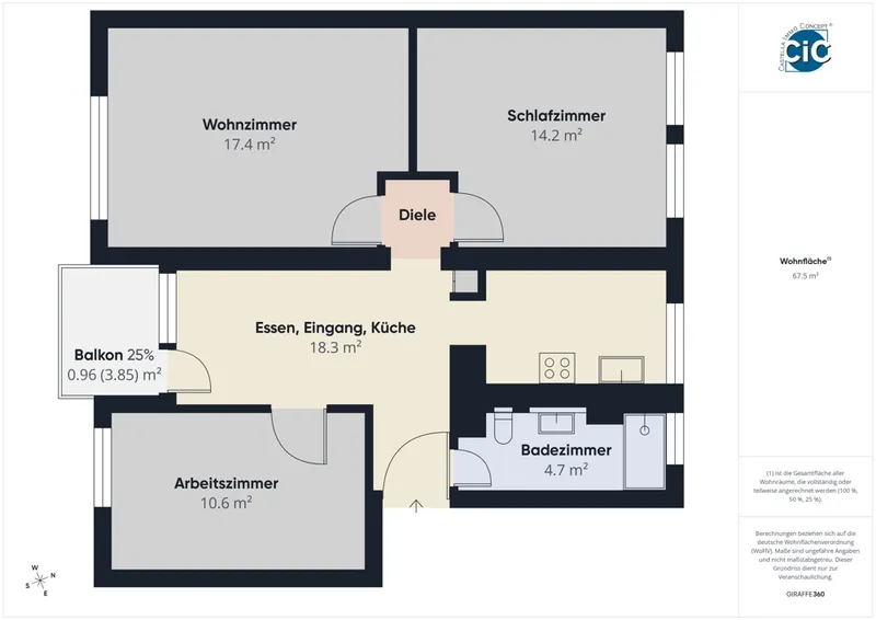 Sämtliche angegebenen Wohnflächen in diesem Exposé wurden gemäß der Wohnflächenverordnung (WoFlV) berechnet.